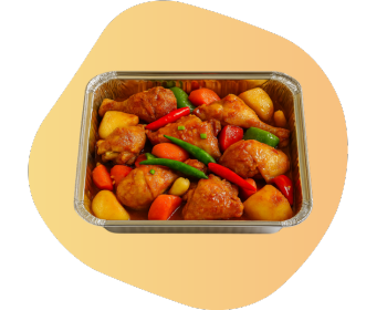 Enjoy the comforting taste of Chicken Afritada, a Filipino classic made with tender chicken simmered in rich tomato sauce, potatoes, and bell peppers. Ideal for catering, events, or daily meals.